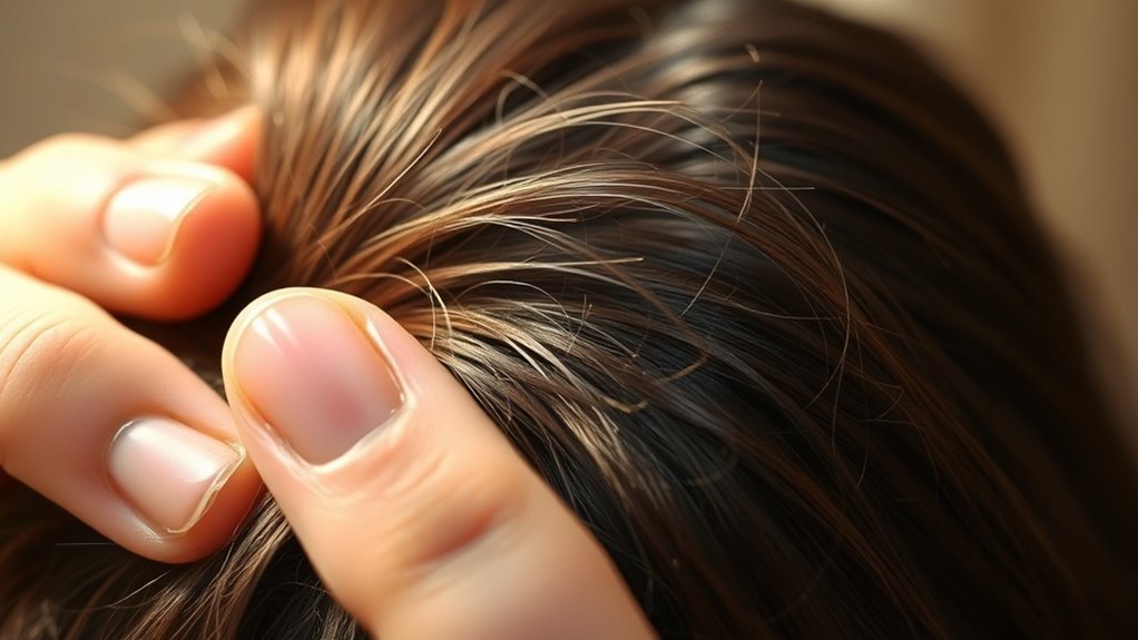 Establishing a daily scalp massage routine not only enhances circulation but also creates a relaxing ritual that can positively impact both your hair health and overall wellbeing. Spend five minutes each day using your fingertips to apply firm, circular motions across your scalp. This practice improves blood flow, delivering vital nutrients to hair follicles while reducing stress, ultimately contributing to a healthier scalp environment. Additionally, scalp massage techniques have been shown to promote thicker hair by stimulating hair follicles and encouraging growth.